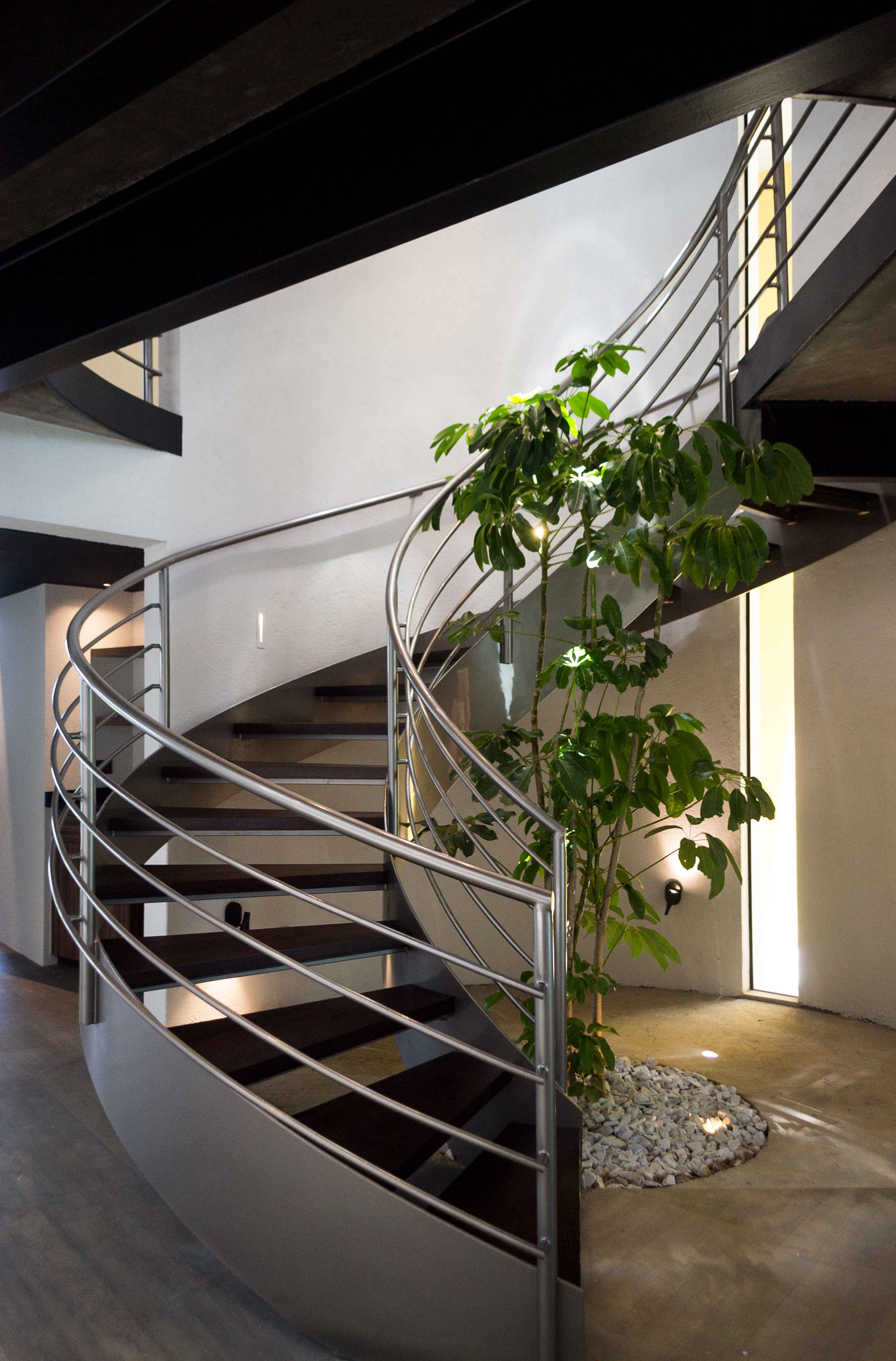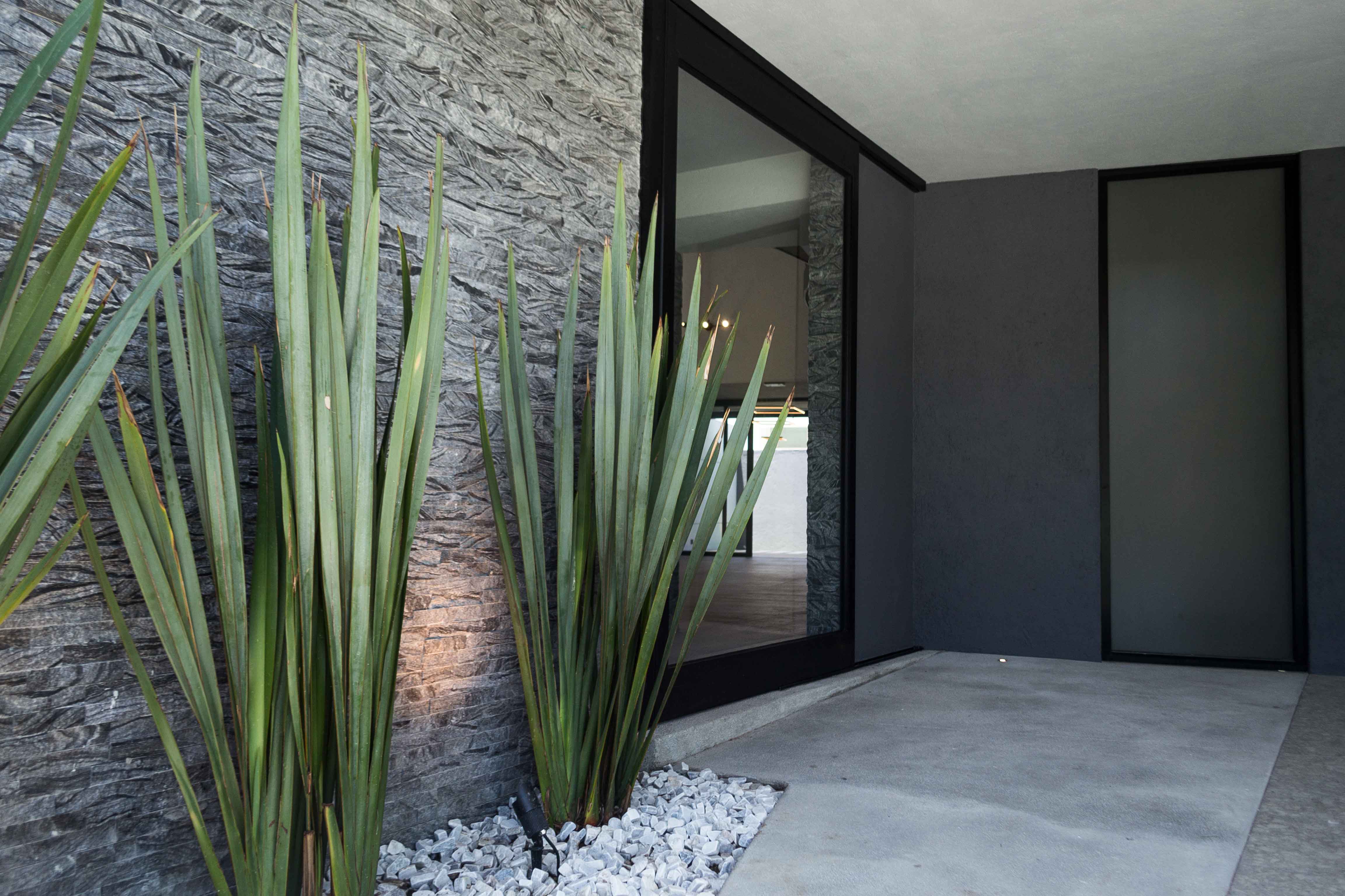La selección de acabados finales fue, con la colaboración del Arq. Carballo, haciendo énfasis en la división de espacios abiertos por medio de los mismos. La pasta con más protagonismo en el proyecto es el Corevstone Pietra negro de la marca Corev, logrando así un buen balance entre texturas lisas y acabados con toques naturales y orgánicos. El diseño de la celosía exterior, fue diseñada a medida y basadas en especificaciones del Arq. Carballo y del cliente.